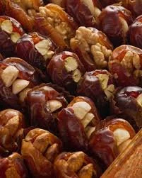 Chocolates / Dates — a luxurious selection of golden dates and decadent chocolates, blending rich flavors and fine craftsmanship into irresistible delights.